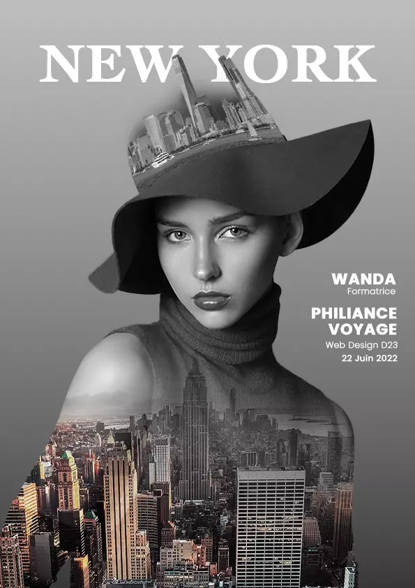Double Exposure, femme chapeau avec ville New York